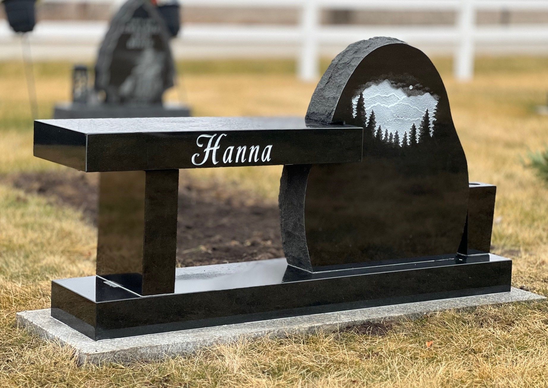 It’s a fantastic alternative to traditional monuments. Our customized benches are designed to incorporate various elements of monument style with seats to fit the family’s needs and wishes.