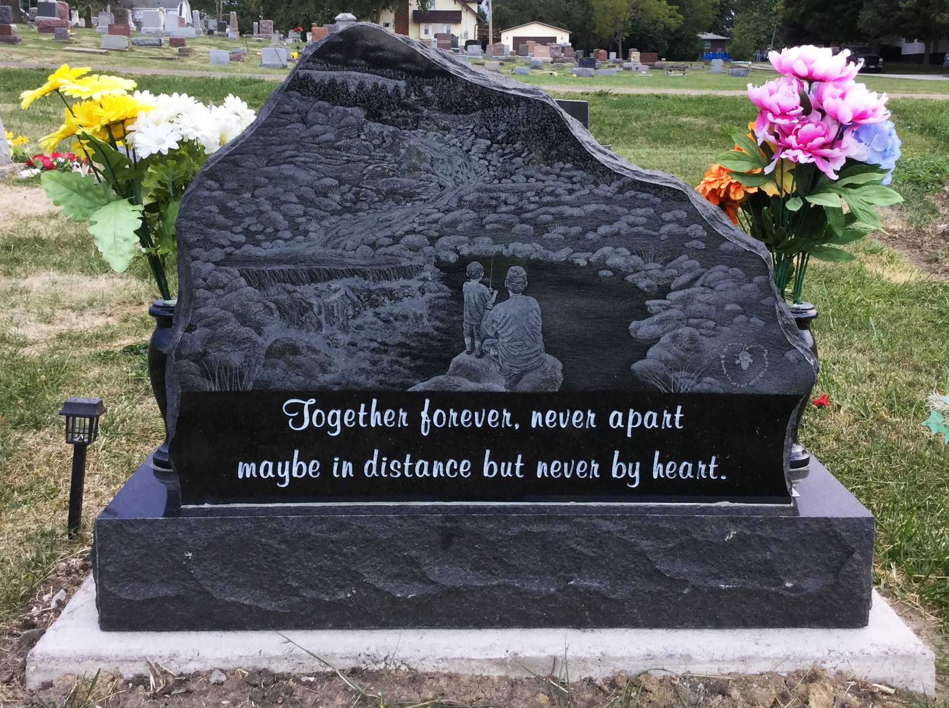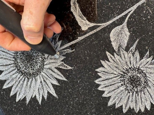 Fuller Monument guarantees that every etching meets our stringent standards because we have total control over the process. Our designer services ensure that each component, including complex patterns and customized graphics, is expertly reproduced onto the stone. Your ideas are precisely and carefully carved into stone at Fuller Monument.